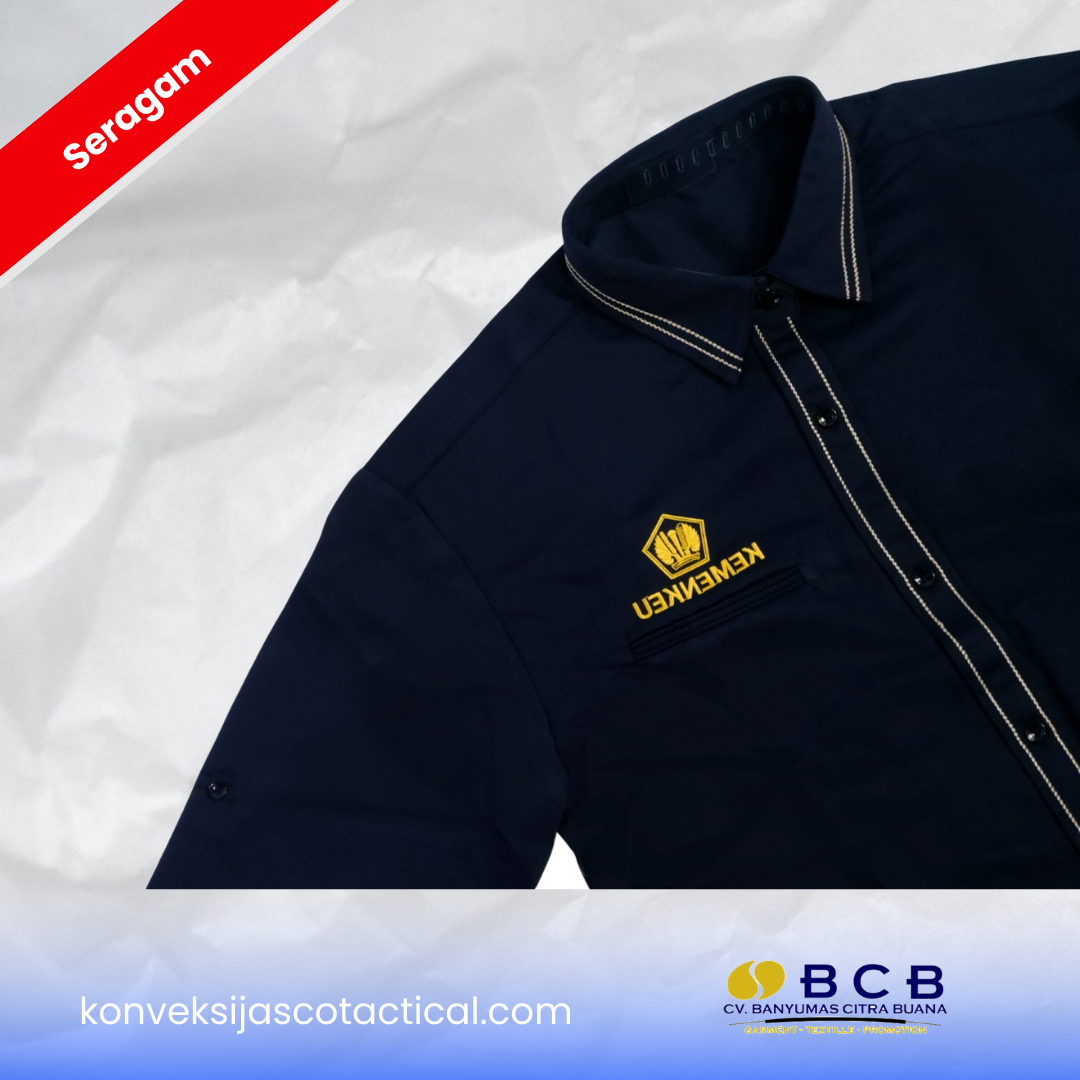 Kemeja kerja bordir JASCO dirancang untuk menunjang tampilan rapi dan profesional dalam lingkungan kerja instansi. Menggunakan bahan berkualitas yang nyaman dipakai dan mudah dirawat, dengan potongan proporsional serta jahitan rapi untuk aktivitas kerja harian.